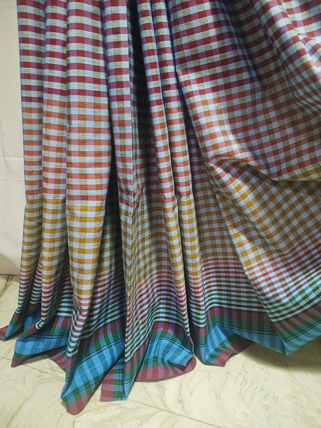 Artisan Note: Each saree is crafted by hand. Minor variations in check alignment or weave texture are not defects but a natural outcome of traditional handloom processes, reflecting the authenticity of human craftsmanship.